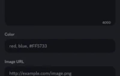 - Create custom embeds with titles, descriptions, colors, images, and footers