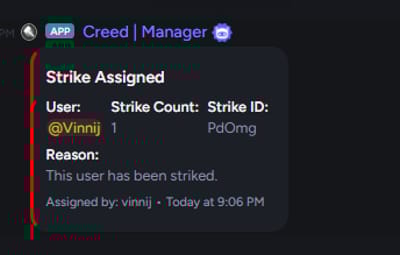 4. The user that got the strike gets a dm with the strike information.