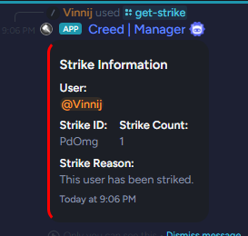 Users with the correct permissions will be able to delete / remove strikes from users.