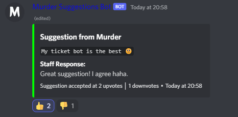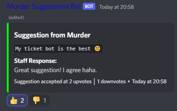 ➤ [OPTIONAL] Suggestion approved logging - Logging to show when a suggestion has been approved! Note: This is optional, see below on how to disable.