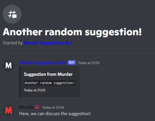 ➤ No commands to send suggestions - Simply send a message in the suggestions channel and the bot will do the rest!