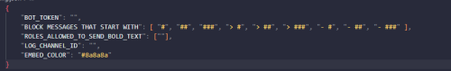 This file is very simple and compact. All it is meant to do is to block things that you do not want to be sent in your Discord. It's pre-built to not allow the new Discord bold text to be sent by non authorized users. However, you can keep those settings, or add more words or special things for it to block.