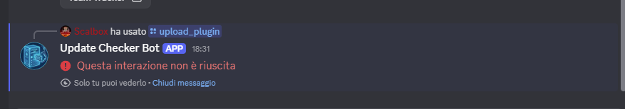 If I upload the plugin using the /upload_plugin command, it updated the plugin, but the bot restarted.
