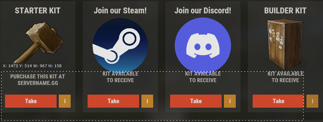 binocular.entity (2096) hatchet.entity (1606) pickaxe.entity (1549) smallwaterbottle.entity (1418) explosive.timed.entity (1398) waterjug.entity (1073) salvaged_sword.entity (1024)oke thanks