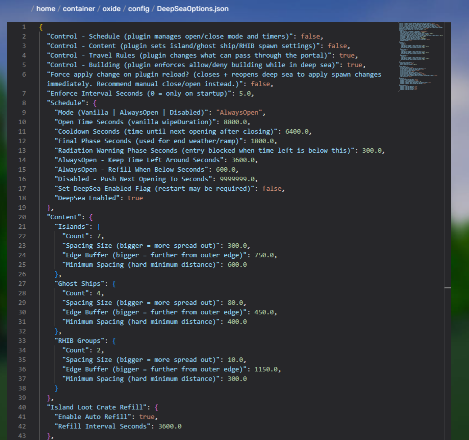 Hello, nearly all overflow boxes from different bots and different definitions of bots are placed in one row like pearls on a string. The line is exactly the horizontal half of the map, from west to east. When the inventory if full, the bots may run over the whole map just to go to this spot and place the box. My partial config: "Inventory overflow": { "Stash setup (bot will put items in the stash)": { "Enable?": false, "Hide stash?": true, "Life time (0 - will exist until restart)": 3600.0, "Maximum amount to use (0 - without limit)": 10 }, "Box setup (bot will put items in the box)": { "Enable?": true, "Use small box?": true, "Box skin": 3565696561, "Life time (0 - will exist until restart or until it dies)": 10800.0, "Maximum amount to use (0 - without limit)": 5, "Another container prefab (you can leave it empty)": "" } },