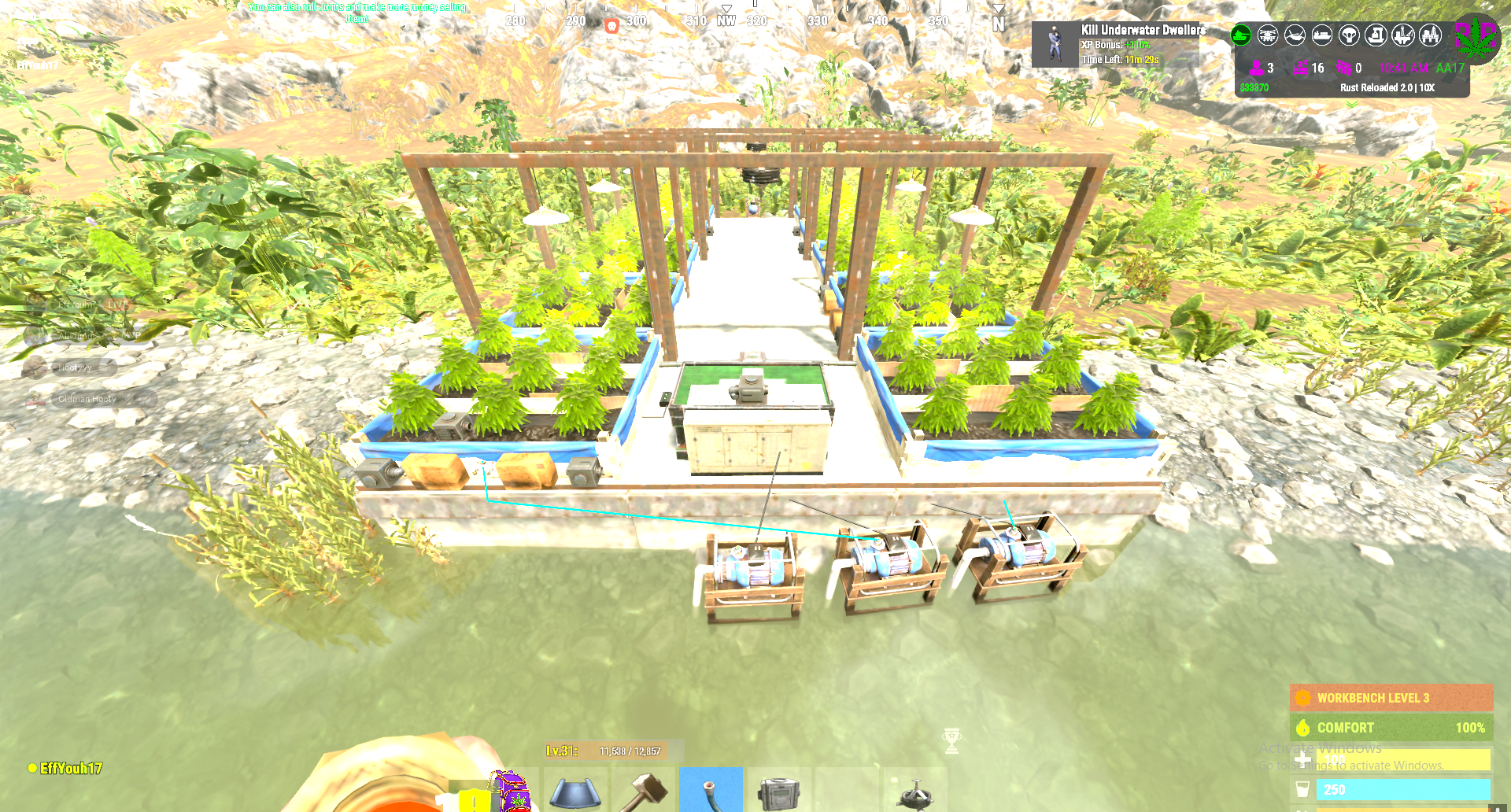 if ya have some time to test for me set it to not use the sprinkler and hook up your waterlines using the splitters like the planter does and see if there still arises an issue. i sprinkler and one splitter per planter.. I also have noticed if the last planter only had 2 water power then it cant keep up with the plants usage. tested and seems to be a rust related issue where if sprinklers do not have enuff water they will run out cause they can not keep up So my next question to verify this is if you kill all the plants in the planter does the planter start to build back up water?