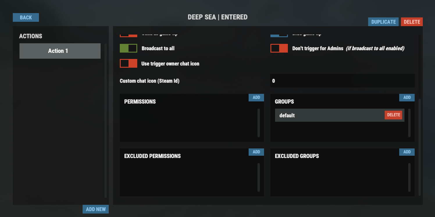 Hi Beee, Just to keep you up to date with my findings: I performed a fresh reinstall and wipe, testing with both custom and procedural maps. The only plugin installed was AutomatedMessages — no other mods were running. After further investigation and testing, I discovered the following: If I go through the area as an admin with Vanish enabled, I get this console error: "Destroying components immediately is not permitted during physics trigger/contact, animation event callbacks, rendering callbacks or OnValidate. You must use Destroy instead." no other message appears. If I go through as a normal player while mounted on a boat, no message appears. If I go through as an admin using only noclip, I do receive the deep-sea entry message. From what I can tell, the issue seems related to the difference between being put to sleep and waking up in the deep-sea zone, which is what triggers the message. When mounted on a boat, the message does not trigger because the player is not put into a sleep state while driving. At the moment, the only way I can consistently trigger the message is by passing through the area with noclip enabled. I hope this information is useful for your investigation.