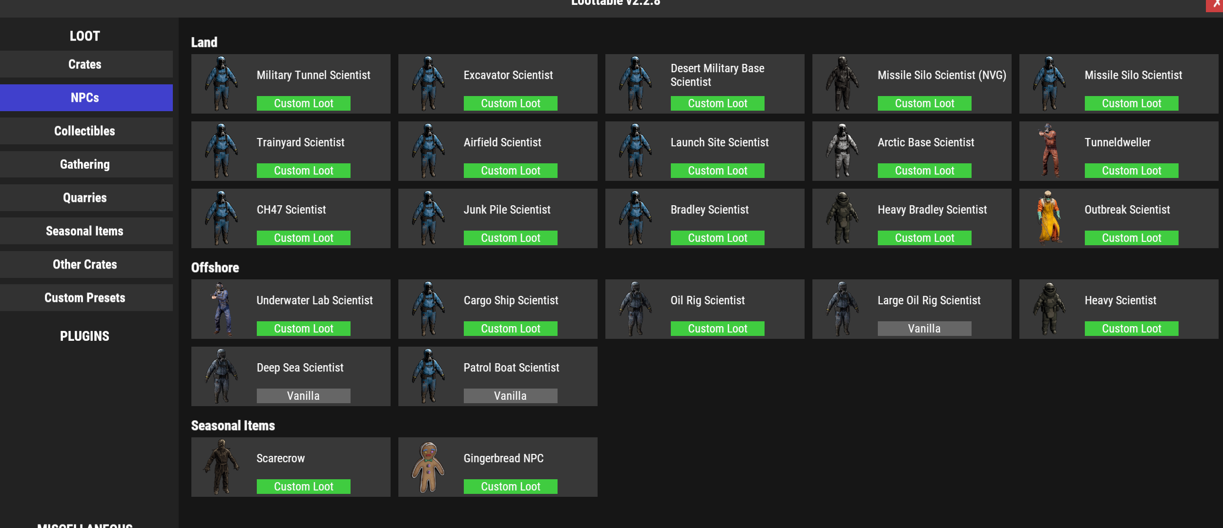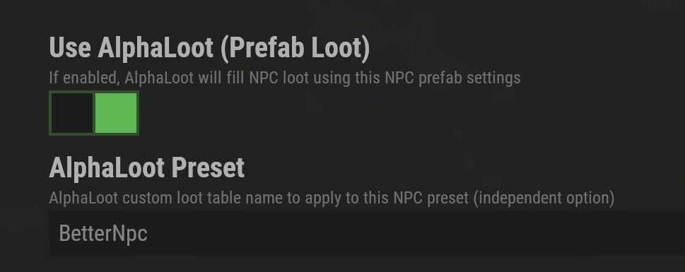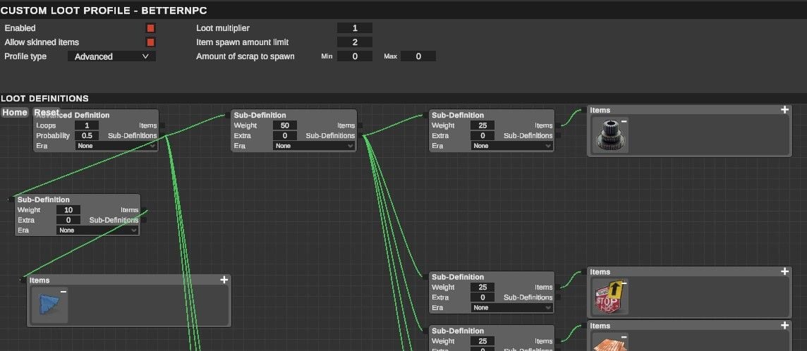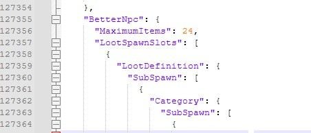 I could use a little help here on this loot system: ( Better Npc 2.1.8) I'm telling the first npc preset to use alpha loot, with an alpha loot preset.. That preset contains no scrap. There is no scrap in my loot table, they buy it, not find it. The items table: If I set to "IsEnabled": false,, it comes right back to "IsEnabled": true,. If i change scrap to fertilizer, it comes back as scrap, it i set max min to 0-0 it comes back to 5-5 I have got to figure out how to get rid of this scrap. I did not update during the Loot Table days, I held out till today, with slash and burn fresh install. What to i need to do to get rid of this scrap? I appreciate your help. -