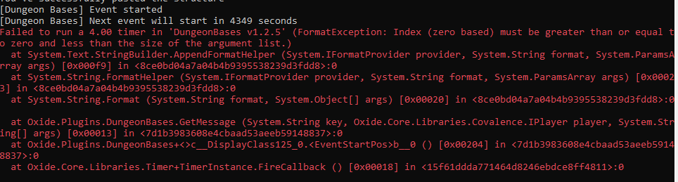 Failed to call hook 'OnServerInitialized' on plugin 'AirfieldEvent v1.6.2' (OverflowException: Value was either too large or too small for a UInt64.