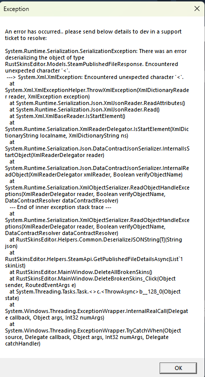 I understand, the button posts web requests to steam api to get info about all skins in the file to determine what is broken and what's not, steam api is very annoying with the limits they have so it might be causing issues if i am requesting a info for too many workshop files. I am not experiencing this with files on my side, so would need the skins file you have an issue with to investigate.