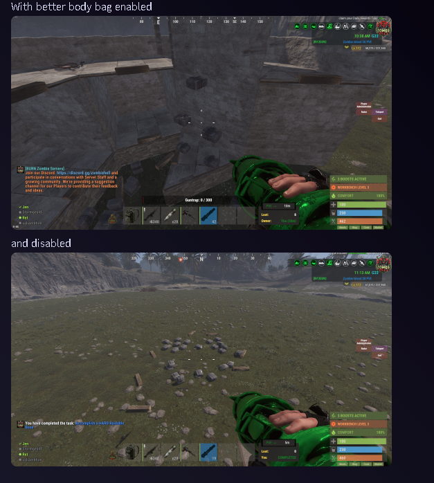 Issue with wallpapers removing on outside of bases. The end of the video shows whats happening when a player lands with paraglider all their outside wallpapers dissapear Here is what Nivex recommended to me as a fix. nivex [GG] robj needs to fix that most likely. need to block the call to CheckWallpaper method if (!socketMod_Inside.DoCheck(place)) { RemoveWallpaper(side); break; } or this code will remove it when it's outside 15.04.2026_15.23.53_REC (2).mp4