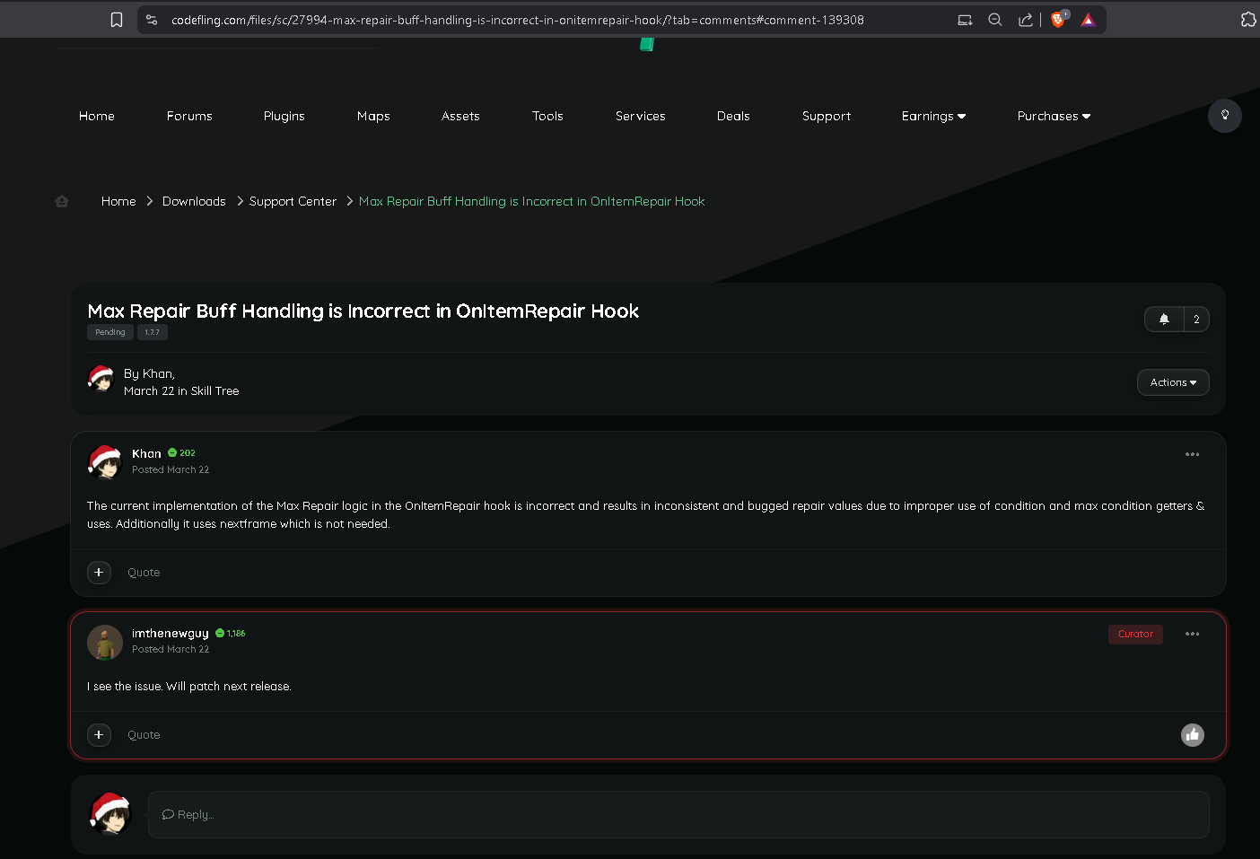 o.reload DynamicMonuments [04.12 05:47:20] Failed to call hook 'OnServerInitialized' on plugin 'DynamicMonuments v1.3.0' (NullReferenceException: Object reference not set to an instance of an object) at Oxide.Plugins.DynamicMonuments.TryLoadData () [0x00218] in <7c124a747e294f3b9903f9dbd947fd25>:0 at Oxide.Plugins.DynamicMonuments.OnServerInitialized () [0x0001a] in <7c124a747e294f3b9903f9dbd947fd25>:0 at Oxide.Plugins.DynamicMonuments.DirectCallHook (System.String name, System.Object& ret, System.Object[] args) [0x0011e] in <7c124a747e294f3b9903f9dbd947fd25>:0 at Oxide.Plugins.CSharpPlugin.InvokeMethod (Oxide.Core.Plugins.HookMethod method, System.Object[] args) [0x00079] in <42f9bedc659b4f4786eb778d3cd58968>:0 at Oxide.Core.Plugins.CSPlugin.OnCallHook (System.String name, System.Object[] args) [0x000de] in <15f61ddda771464d8246ebdce8ff4811>:0 at Oxide.Core.Plugins.Plugin.CallHook (System.String hook, System.Object[] args) [0x00060] in <15f61ddda771464d8246ebdce8ff4811>:0 [04.12 05:47:20] Calling 'OnServerInitialized' on 'DynamicMonuments v1.3.0' took 104ms Loaded plugin DynamicMonuments v1.3.0 by Adem [04.12 05:47:20] Failed to call hook 'OnServerInitialized' on plugin 'DynamicMonuments v1.3.0' (NullReferenceException: Object reference not set to an instance of an object) at Oxide.Plugins.DynamicMonuments.TryLoadData () [0x00218] in <7c124a747e294f3b9903f9dbd947fd25>:0 at Oxide.Plugins.DynamicMonuments.OnServerInitialized () [0x0001a] in <7c124a747e294f3b9903f9dbd947fd25>:0 at Oxide.Plugins.DynamicMonuments.DirectCallHook (System.String name, System.Object& ret, System.Object[] args) [0x0011e] in <7c124a747e294f3b9903f9dbd947fd25>:0 at Oxide.Plugins.CSharpPlugin.InvokeMethod (Oxide.Core.Plugins.HookMethod method, System.Object[] args) [0x00079] in <42f9bedc659b4f4786eb778d3cd58968>:0 at Oxide.Core.Plugins.CSPlugin.OnCallHook (System.String name, System.Object[] args) [0x000de] in <15f61ddda771464d8246ebdce8ff4811>:0 at Oxide.Core.Plugins.Plugin.CallHook (System.String hook, System.Object[] args) [0x00060] in <15f61ddda771464d8246ebdce8ff4811>:0 [04.12 05:47:20] Calling 'OnServerInitialized' on 'DynamicMonuments v1.3.0' took 104ms [04.12 05:47:20] Loaded plugin DynamicMonuments v1.3.0 by Adem
