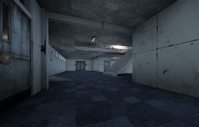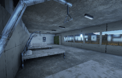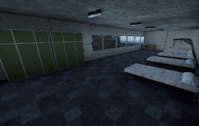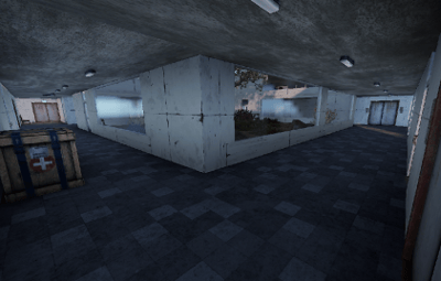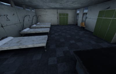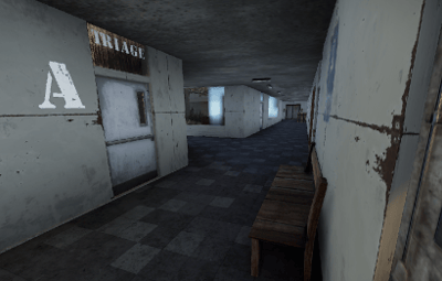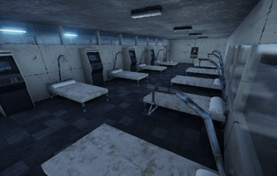 A hospital with multiple wards, a treatment room, and an emergency room.