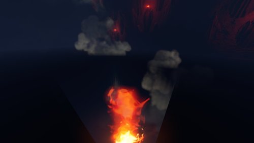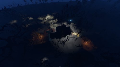 Once placed you can if you wish set up the scene. Place fuel in the lamps, wood in the fire, wood in the other items such as fire pits and fireplaces. Also you will find fog machines, place fuel in them and either switch on or make them motion activated. When placing on your map make sure the pit is far enough above ground to not be in water, make sure the alpha hole for the elevator is big enough and you will have to do some terrain blending at the edges. Sensors around the place will activate various effects.