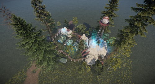 This is a military camp that seems to have been abandoned for a while. That doesn't mean the scientists will never return. If they need a place to fallback to or a place to take a rest after being out all day, this is the place to go. This small monument is the perfect solution to a large bland area on your custom map, and will give your island a tiny bit of backstory.
