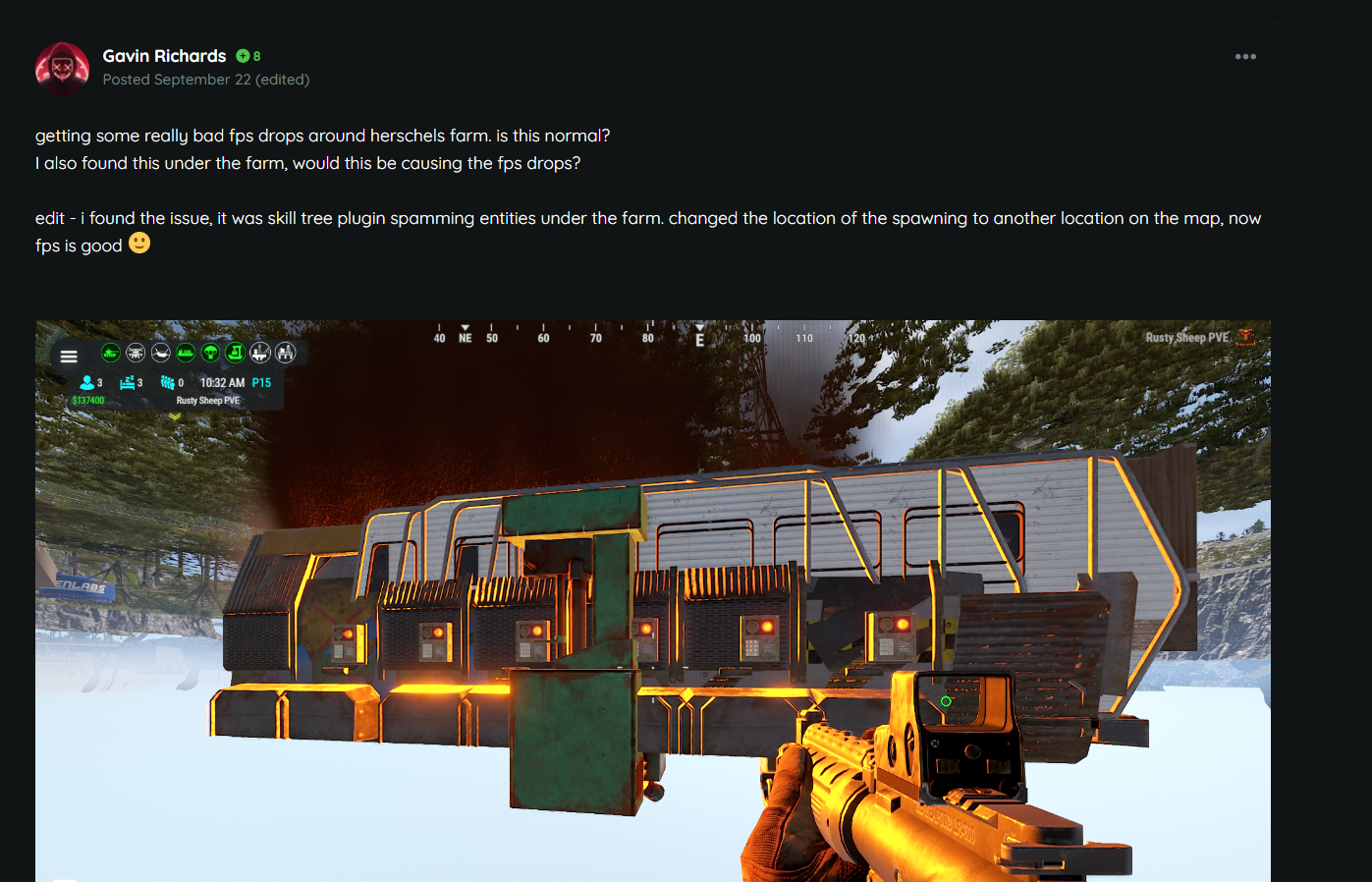 I also don't have any plug-ins installed that have anything to do with the workbenches. Back when I first bought the map, I had this problem with a vehicle that kept spawning there. At first I thought it was a convoy, but now it's objects, and I can hear animal footsteps in that spot. I have no idea what that's supposed to be; I'm a bit overwhelmed. 😄 Thank you for taking a look.