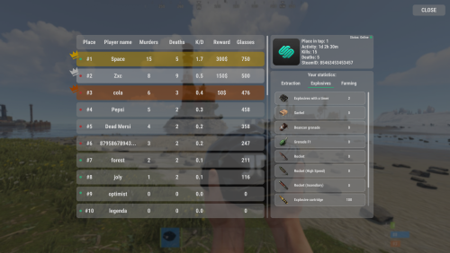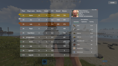 Statistics show information about the players: How many resources they mined, how much explosives they crafted, how many plants they collected.