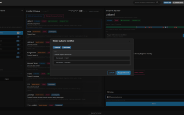 - An AI powered monitoring layer that automatically flags suspicious players and triggers evidence capture without relying on F7 reports.