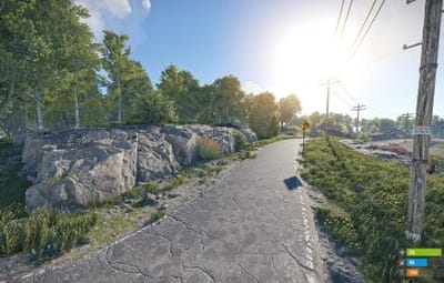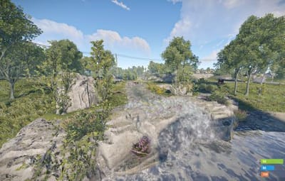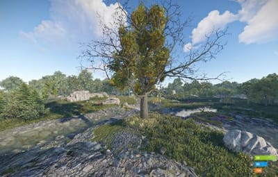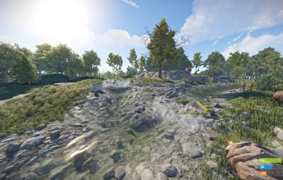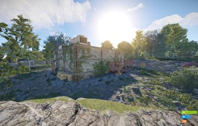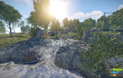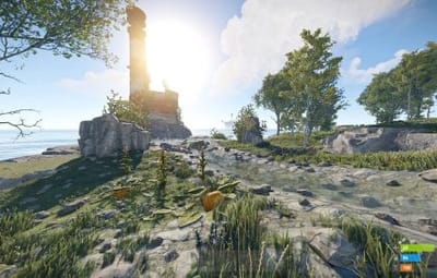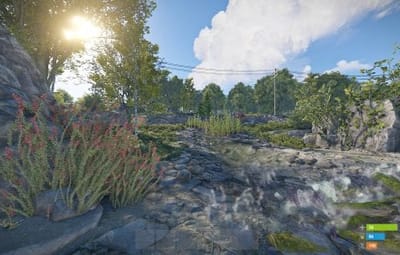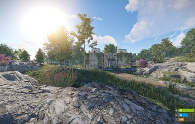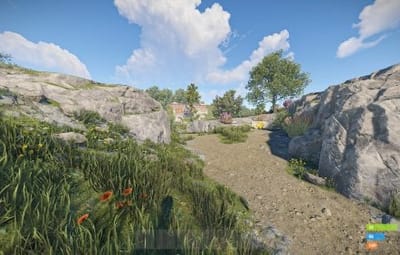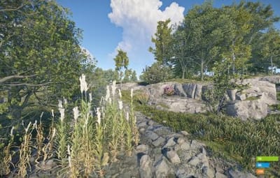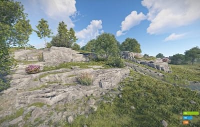 - Manually added vegetation (Flowers, Bushes) around most cliffs,