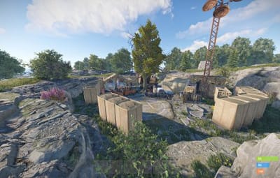- Fishing Village - Safe Zone, recycler, all outpost vending machines, fortune wheel, marketplace (drone shop), mission vendors (NPCs), repair & research bench