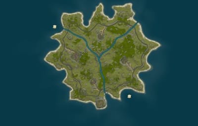 - All cliffs and rock formations are placed manually,