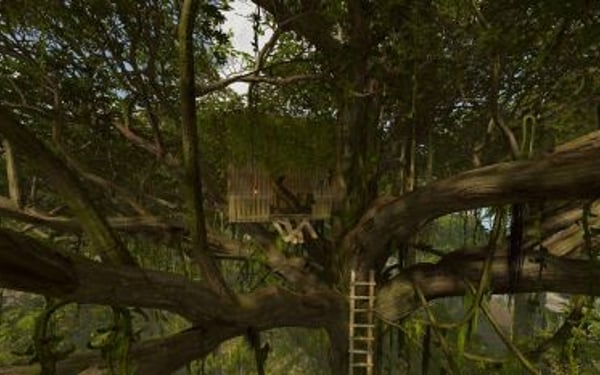 A jungle-themed parkour monument that blends nature and vertical challenge.
