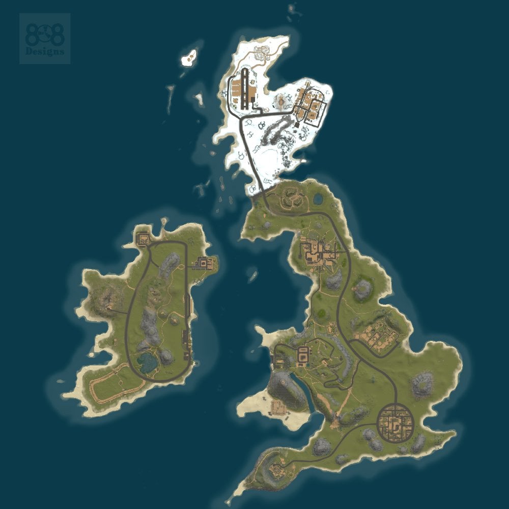 It is a 3.6k size map, but the landmass is much smaller, so good build space is scarce. This will cause fights for building claims on more populated servers, but don't fret! There are many various sized "Raft foundations" that serve as great sea bases. The road network is simple but packed with scrap piles. This makes scrap runs very rewarding, but beware! The Bradley patrols these lands, so if you hear the rumbling of tank tracks, Run!