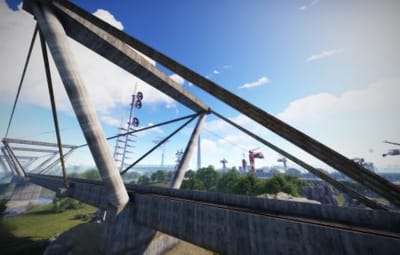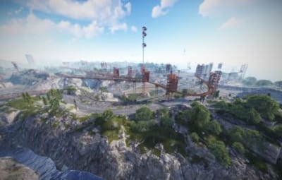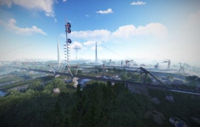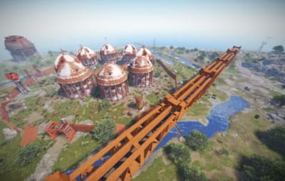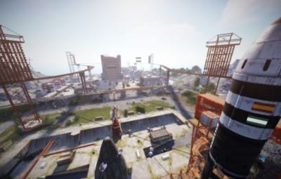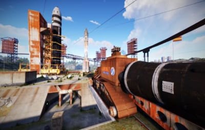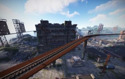 • Launch site (Customized, with a monorail surrounding this monument, it also contains: Ziplines, a small store, customized loot, npcs and a tug on which you will find a red card respawn)
