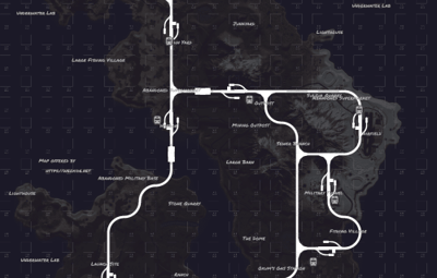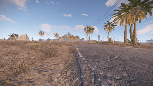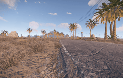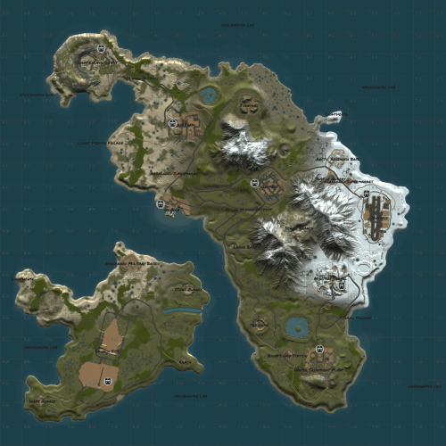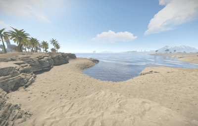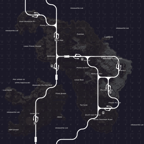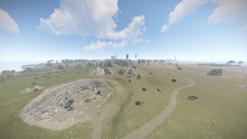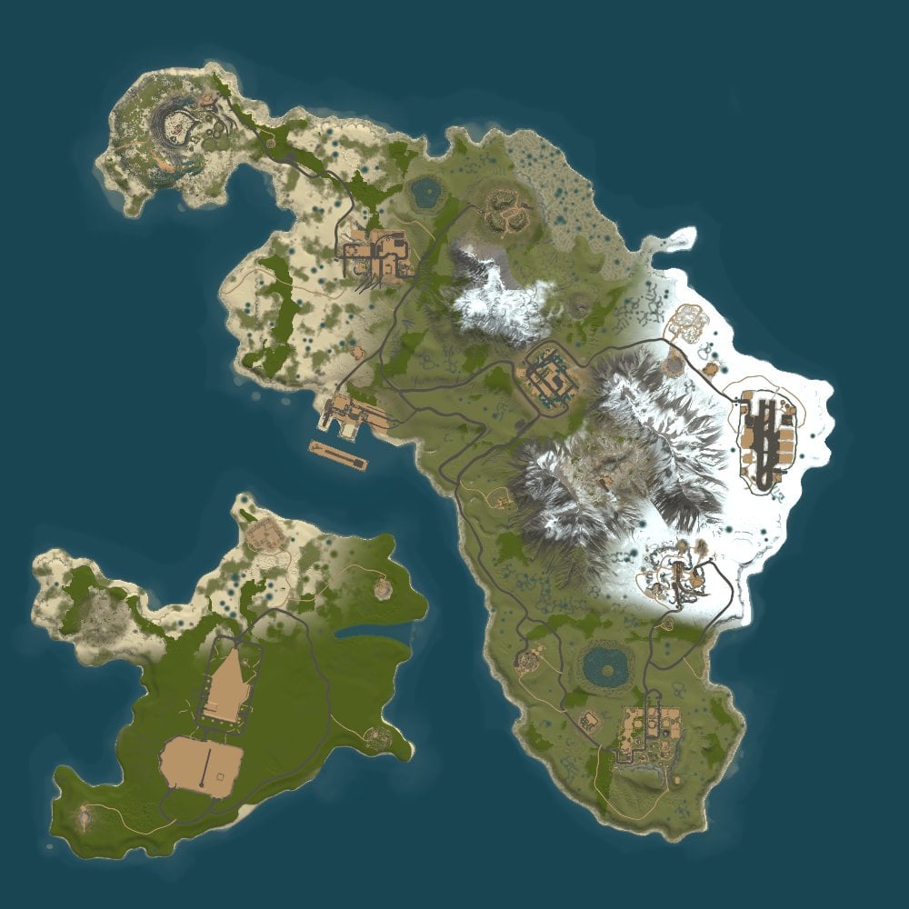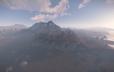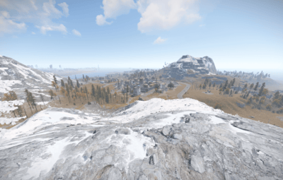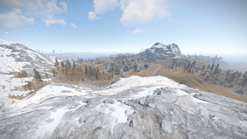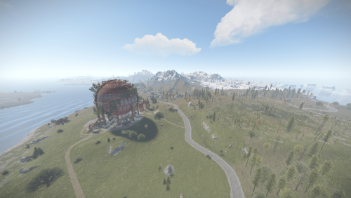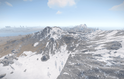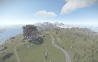 It has an unique terrain and procedural monuments in unique locations and a procedural Outpost with an Airwolf Vendor and bandit camp vending machines + gambling wheel.