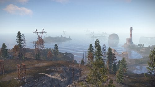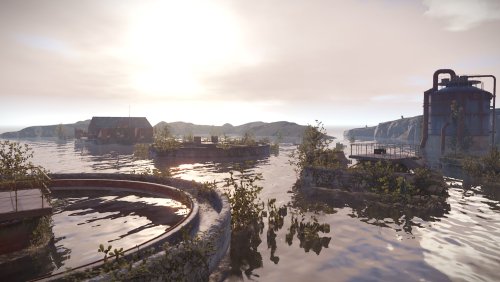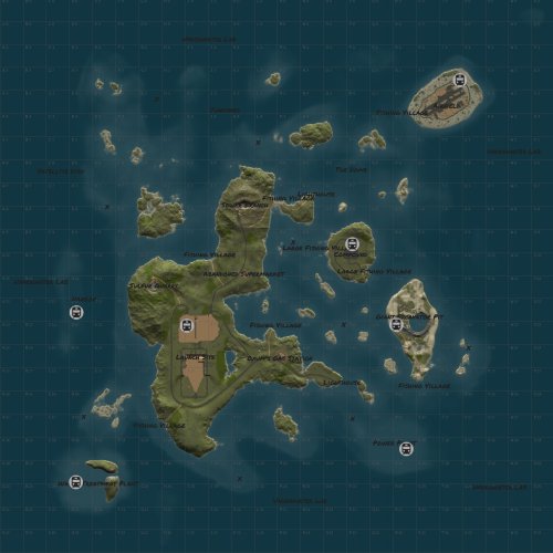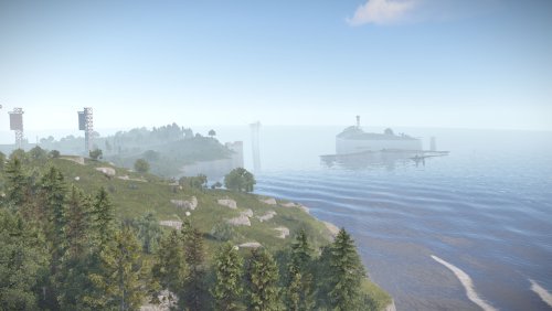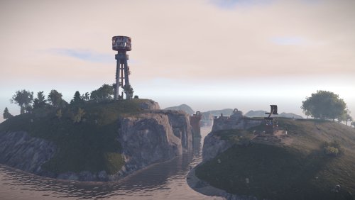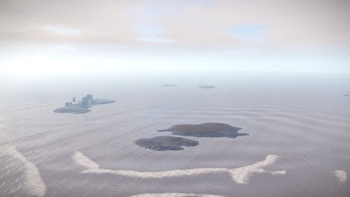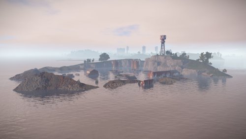 I present to your attention a very simple and interesting map with unusual gameplay. You will have to use water transport as much as possible. There is a fishing village on almost every island, where you can buy various goods using the marketplace, as well as water transport. Several monuments are completely flooded, there are also monuments that are half flooded, etc. Mini-points with loot are installed on the water and in some there are recyclers. Underwater rocks are modified and have excellent prey. Near the underwater laboratories you will find places to build a small base.