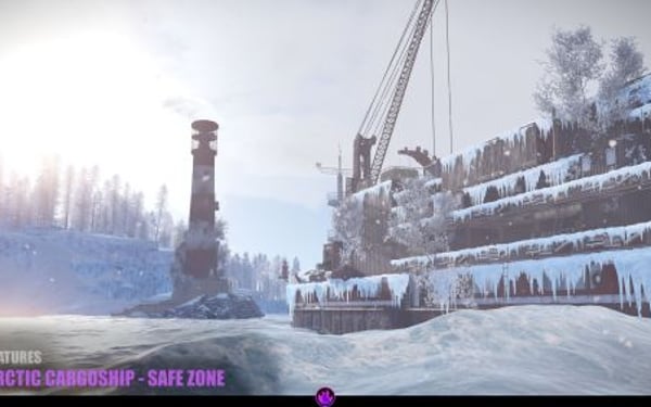 - Winter CargoShip (safe-zone): players can spawn here if the island too dangerous