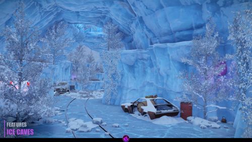- Ice Caves: trains run through them, and players can build a base in some areas