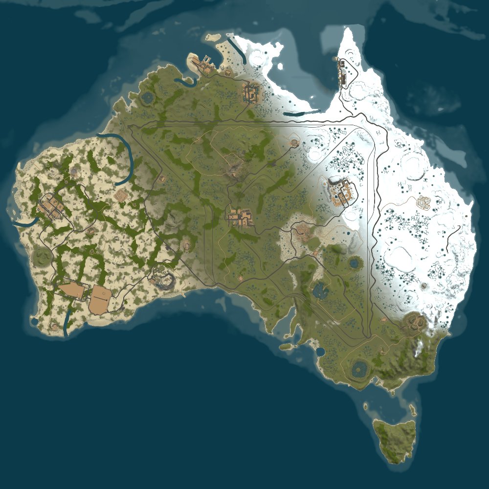 Crikey, It took all arvo to make, mate. Kept getting bloody billabongs in the middle of the desert. Fair dinkum, the heightmap is iffy but a larrikin can still grab his swag, crack a tinny and go walkabout, build a base out woop woop and try keep the hoons, bludgers and bogans in budgie smugglers from buggering off with your hard yakka.