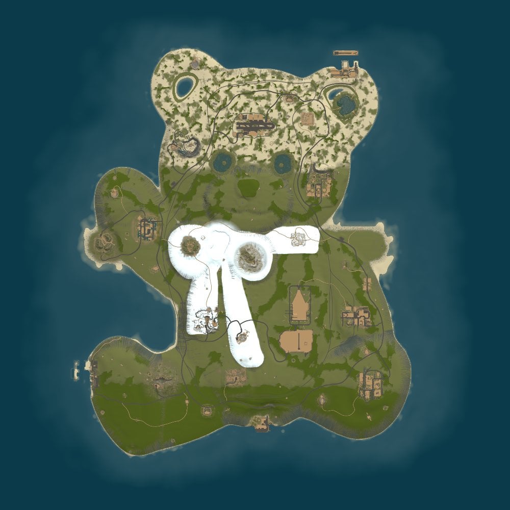 Bear Map offers a refreshing Rust experience with a uniquely shaped landscape and all essential game features. With a layout resembling a teddy bear, this map adds character without sacrificing performance or gameplay balance. It's designed for all types of servers — from relaxed communities to competitive environments.