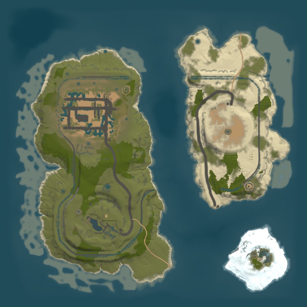 Another great mini-map with a lot of content for your players. The main component of the map has 3 islands, 2 large and 1 small. The islands are connected by 2 bridges. There is a railway on the map, there is also a metro with 4 stations and underwater laboratories.