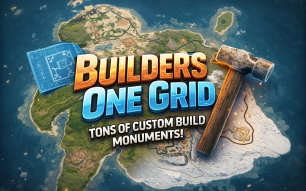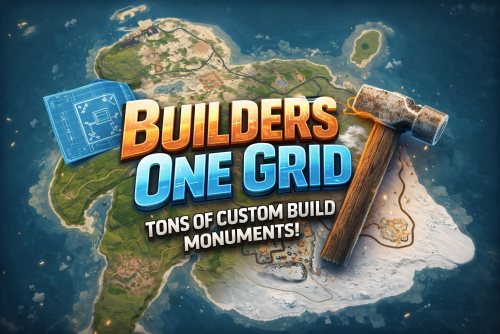 Builders One Grid is a small fast-paced, builder-friendly 2000k Rust map loaded with Custom Buildable Monuments created by myself! The problem with most One Grid Maps is the lack of places for players to build. With my map your players will have tons of fun and unique spots to build a base from cool caves, military installations, bus stops, icebergs, houses, islands and much more! Many many monuments to loot as well! Designed for smooth performance, creative freedom, and competitive gameplay.
