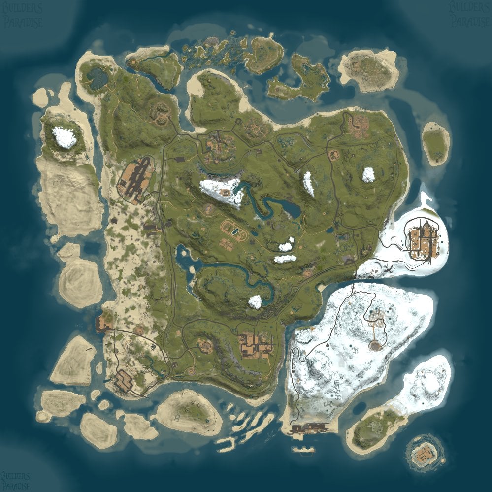 Welcome to Builder's Paradise: Vol #1. A map focused on providing players many fun and interesting places to build! Build a more traditional base on flat land or get creative on one of the many buildable in-game prefabs or custom caves.
