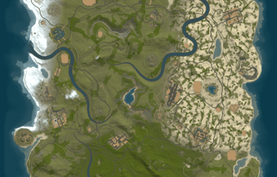 Launch Site • Military Base • Military Tunnels • Nuclear Missile Silo • Airfield • Large Harbor • Outpost • Excavator • Large Oil Rig • Small Oil Rig • Small Harbor • Dome Sphere Tank • Satellite Dish • Ferry Terminal • Sewer Branch • SuperMarket • TrainYard • PowerPlant • Gas Station • Warehouse • Arctic Research Base • Lighthouse • HQM Quarry • Sulfur Quarry • Stone Quarry • Fishing Village • RadTown • JunkYard