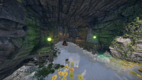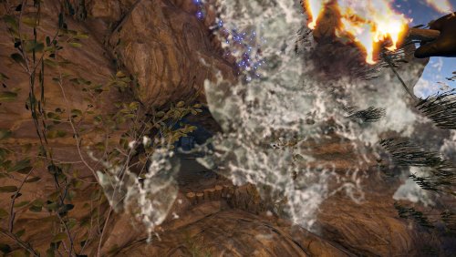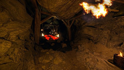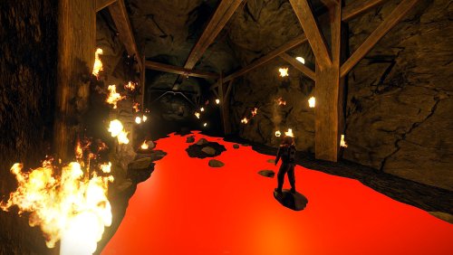 > The lava has fire effects, glows in the dark & players take damage if they touch it.