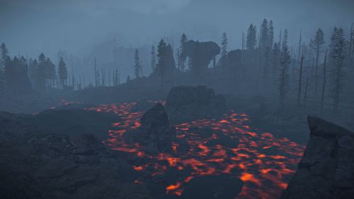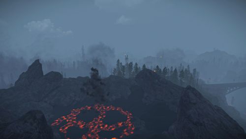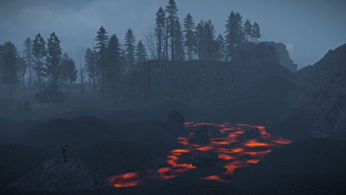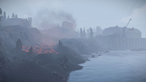 Years ago, back in 2022 there were facepunch commits of a volcanic biome (hackweek-caldera), which unfortunately never made it into the game files. I was interested in this idea before, but have further got inspired by those commits and have since been planning for this volcanic themed map, resulting in the following:
