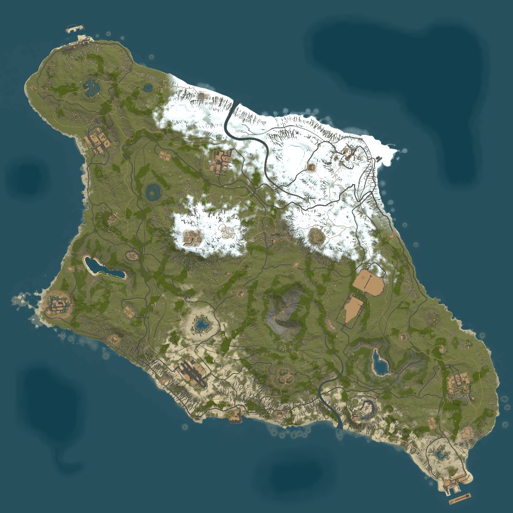 Cayo Island is a public map comission made for someone who approached me about a custom map and we've decided to publish the map once finished , it is a 4500 landmass island with unique landscape and it includes all procedural monuments with several roadside monuments and unique spots for base building or just interesting ways to gather loot while exploring the map.