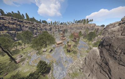 A highly detailed Custom 1k map , including all biomes , custom dense vegetation, custom rock areas, formations, rivers ,custom monuments, even bandit camp is custom, 0 generation. I really tried to push how much you can fit in a 1k so there is no pinching prefabs at around 13k , i wanted you to be able to disappear or feel like you could disappear in this map and not feel miniature, the monuments are focused on what you need for pvp with meds, food, a way to fix transport and loot. The map itself also offers food around rivers and there are fresh water lakes.