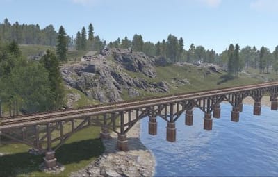 Clockworks is a small-sized map designed from the start to be totally custom nothing default from the roads to the monuments but don’t worry we have created equivalent monuments in the world progression system plus a twin-track above-ground rail network (Cargo Train Event Compatible) running the full circumference of the map complemented by railway-related monuments along the way.