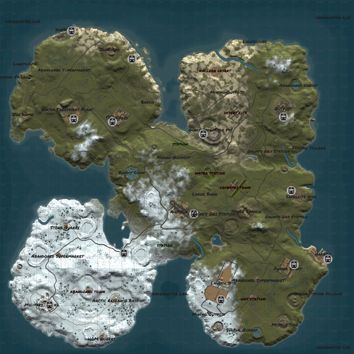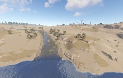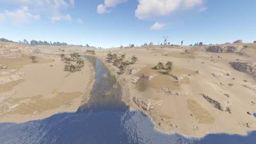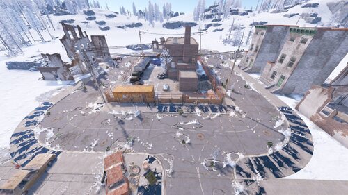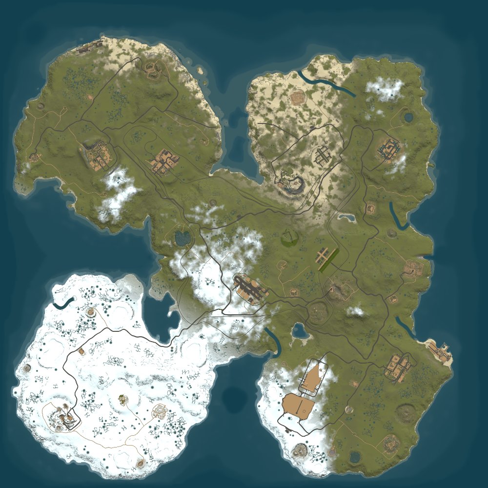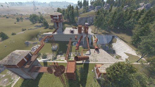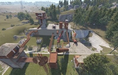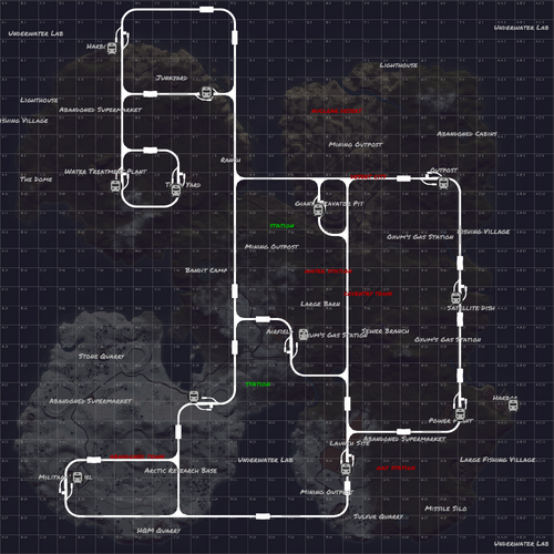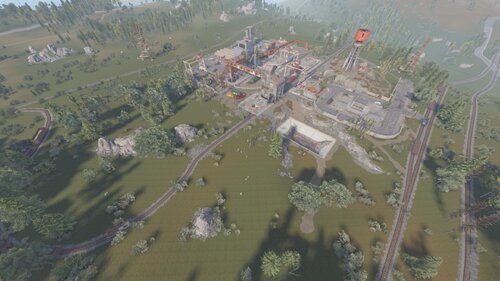 This map was created from scratch using World Creator and offers plenty of free space for building. It features a huge railway network that passes through 2 monuments and 6 custom monuments.