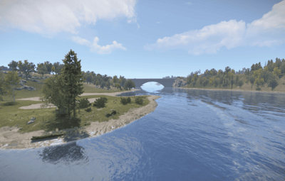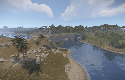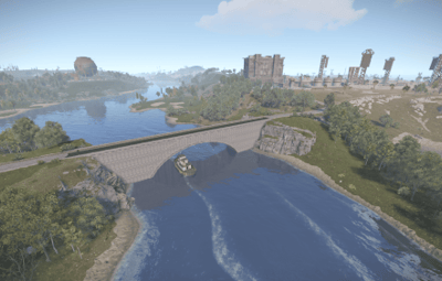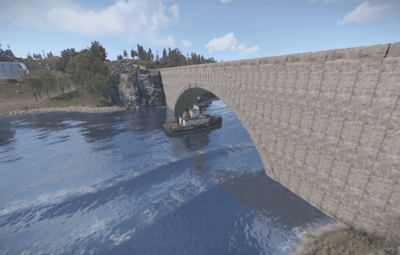 Two large bridges located at both ends of the map allow both trains and vehicles to cross, while watercraft can freely pass underneath.