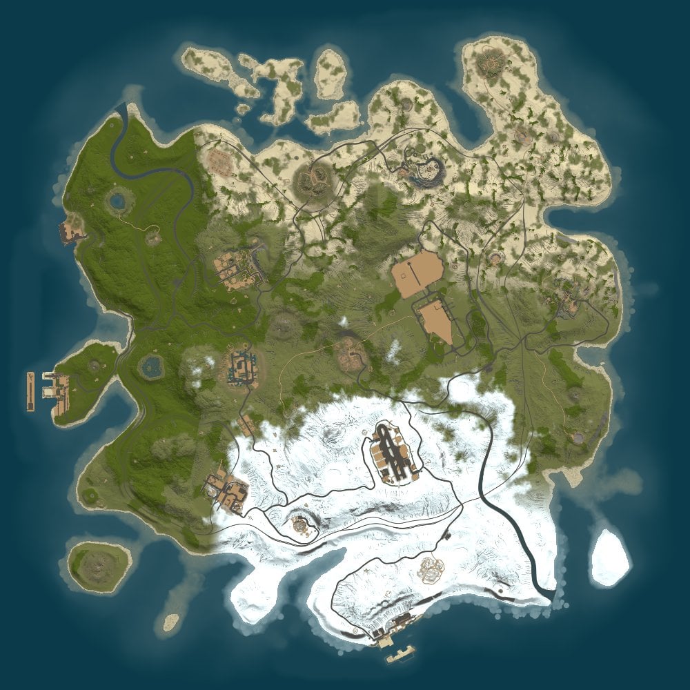Custom buildable structures the map includes 6 designated building spots, allowing players to establish their own bases. There are 3 types of these structures (2 of each type).