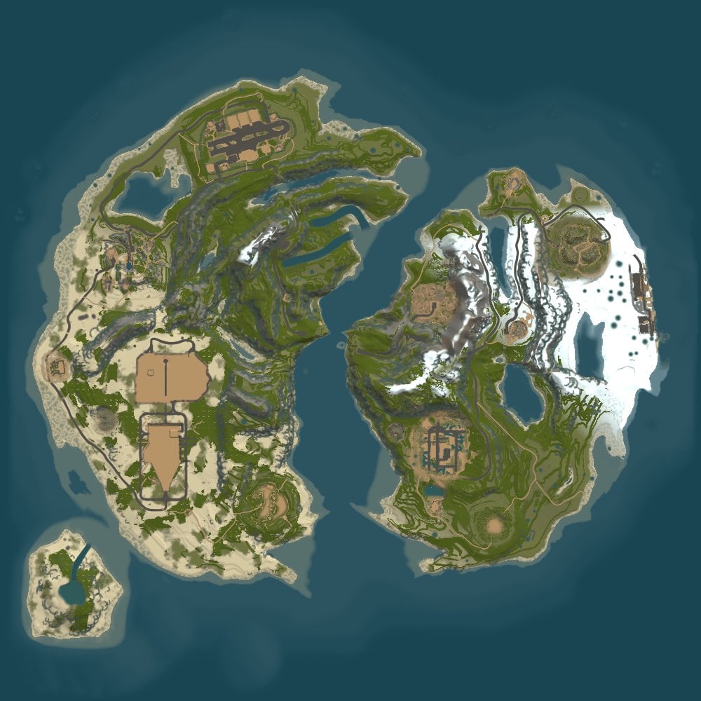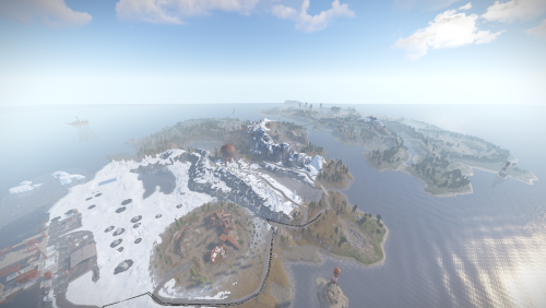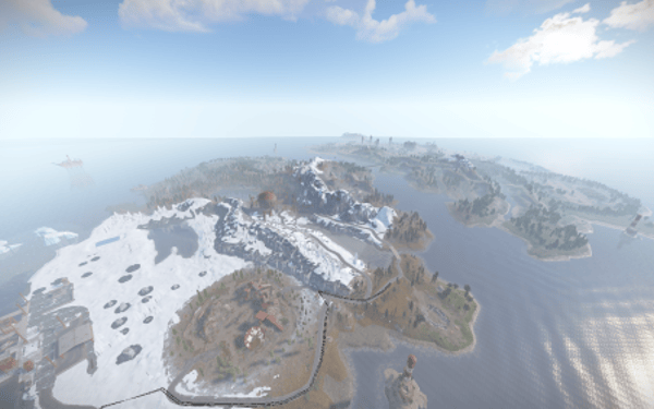 Challenge your players with the split island layout and mountainsides in this beautiful and completely handmade map. To connect the islands, there is a fully custom made Above ground Labs (Underwater labs incorporated inside the connecting bridge), with its own puzzle for entry! In addition to my own bridge, this map features a beautiful arch bridge next to airfield, made by Bxrflip, and mixed in the iceburgs, a custom sunken ship puzzle made by Kaho. Everything comes together on this map to provide not only a unique experience that cannot be achieved by procgen, but a whole new level of resource competition that will keep your players busy all wipe!