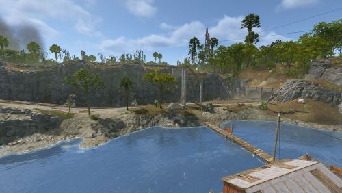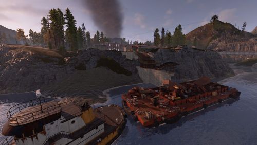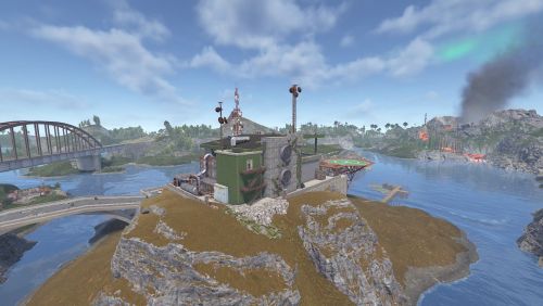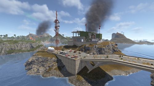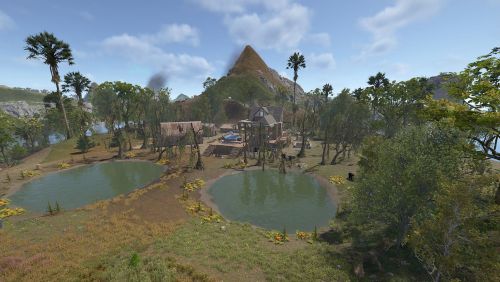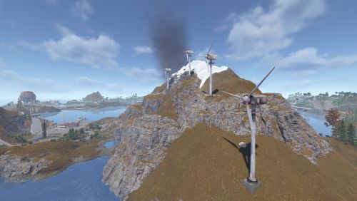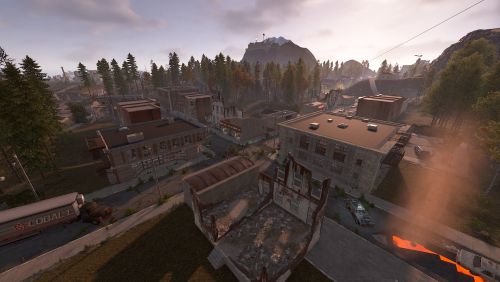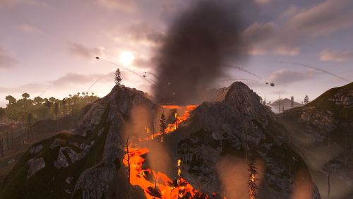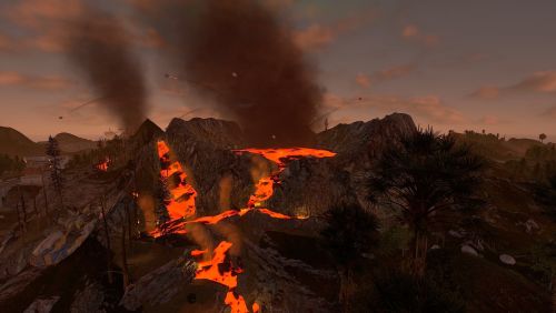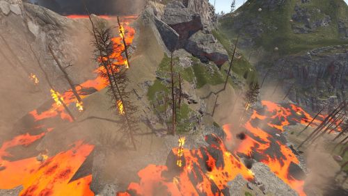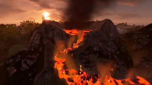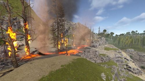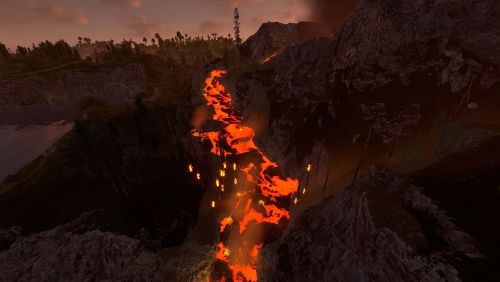 Dante's Peak is a 3000K size map with around 75K prefabs featuring an active Volcano (plugin included) The Volcano is the main source or ore resources on the map so build close to the mountain and your guaranteed rich pickings at the expense of possibly getting your base wrecked from the bombardment. Build away from the danger zone and you will struggle to find all you need but no risk of death from falling rocks.