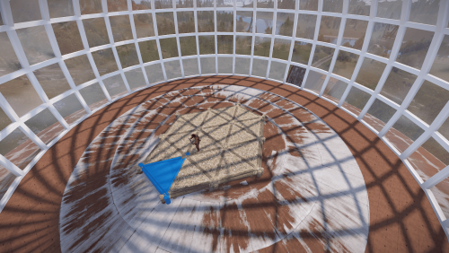 A floating UFO platform with an elevator.