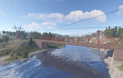 The layout includes evenly spaced monuments to optimize the FPS load for clients, ensuring smooth gameplay. Players can find custom building spots in the subway, marked as 'XU' on the minimap, amidst a network of bridges that are navigable by tugboats. The map's design incorporates a multitude of rivers, allowing tugboats and other water transport to access any point on the map with ease.